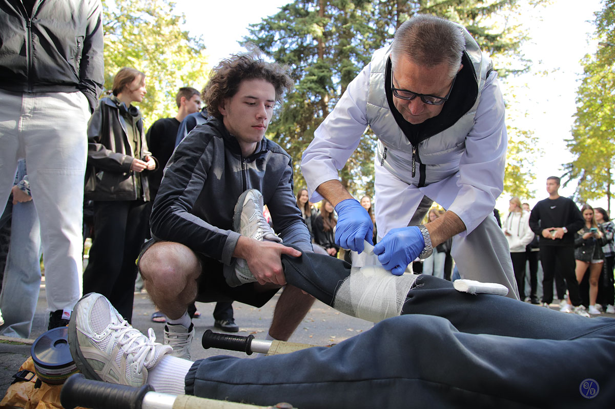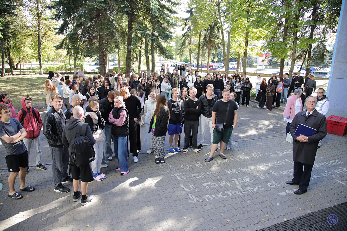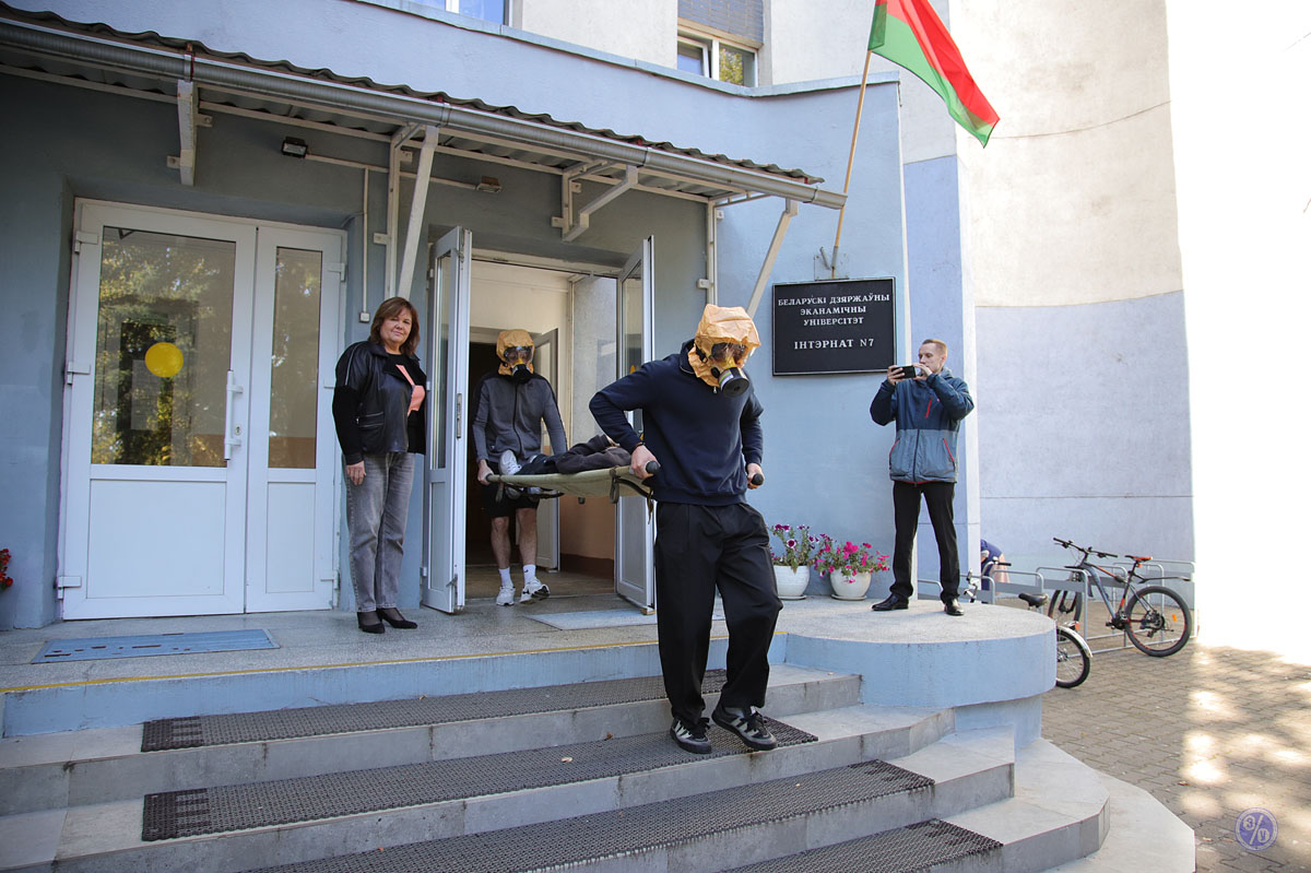 On September 25, Belarus celebrated Unified Safety Day. As part of this event, BSEU practiced its evacuation plan for staff and students: following an alarm, staff and students in Dormitory No. 7 evacuated the building in an organized manner. A demonstration of a human evacuation and a firefighting demonstration were held in the adjacent area.