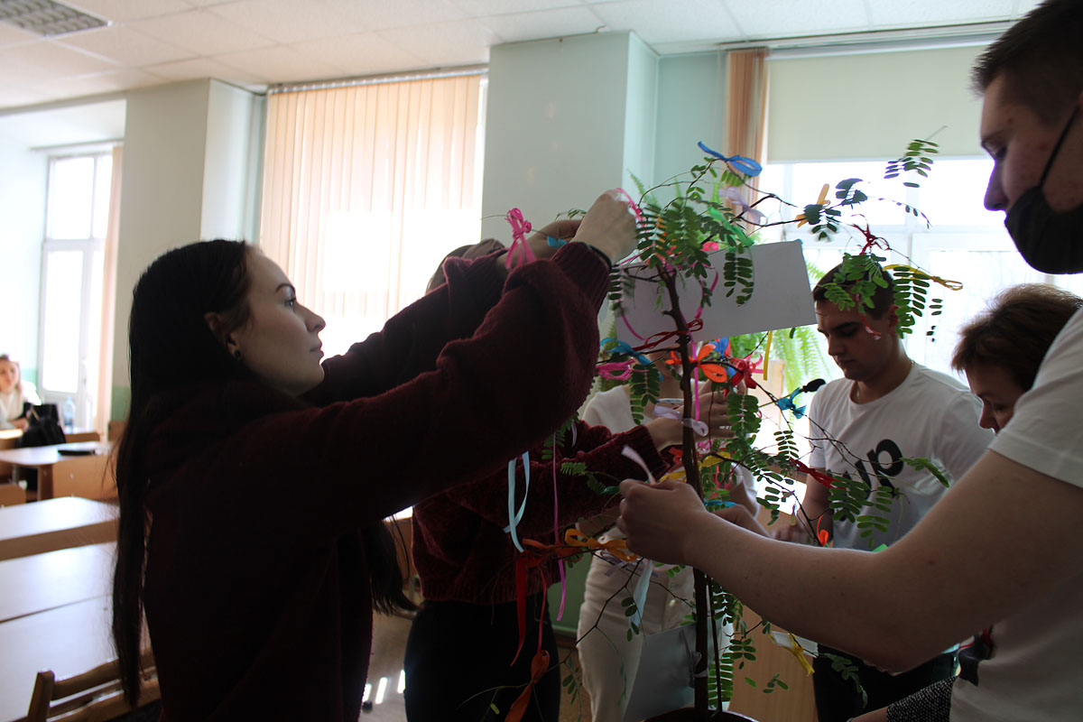 Несомненным украшением мероприятия стало совместное фото студентов, организаторов встречи и И.И. Уминского на фоне так называемого «Дерева дружбы», оформленного студентами как символ единения двух славянских народов. «Дерево дружбы» выглядело по-особому красиво и торжественно, ведь теперь на нем расцветали теплые слова-пожелания не только студентов Беларуси и России друг другу, но и напутствие на дружбу и мир И. И. Уминского.
