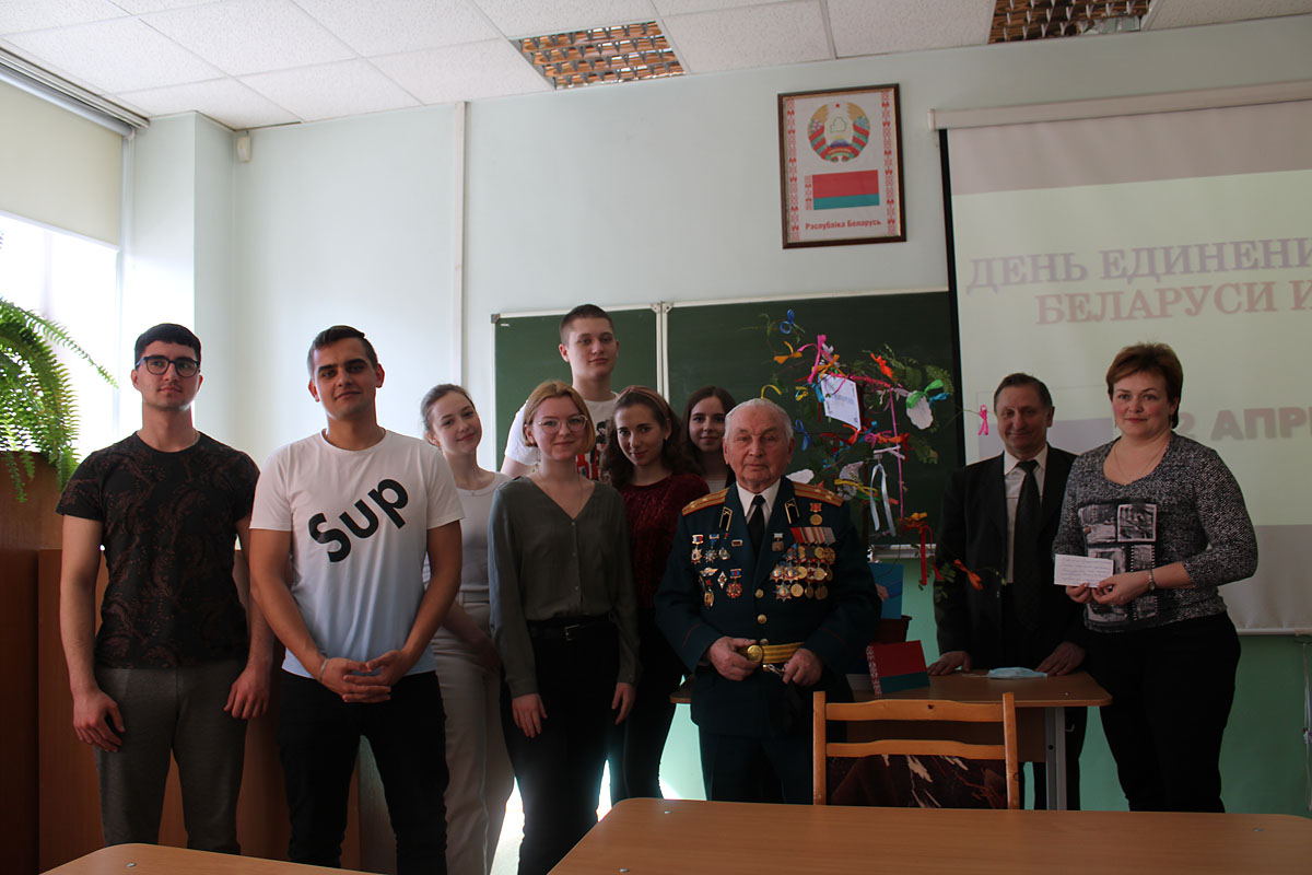 Ключевой и наиболее значимой частью мероприятия стала встреча студентов с полковником в отставке, консультантом проекта эколого-патриотического и туристического маршрута о героях-байконуровцах и космонавтах, разработанного студентами курируемой группы ДГК 3 курса профессора К. Ф. Саевича, председателем Совета первичной общественной организации «Байконуровец» Иваном Ивановичем Уминским. Ветеран поведал об истории возникновения Дня единения народов Беларуси и России, важности дружбы союзных республик и поделился опытом служения на Байконуре. Иван Иванович беседовал со студентами, задавал вопросы, подталкивающие их задуматься о смысле и ценности жизни, истории.