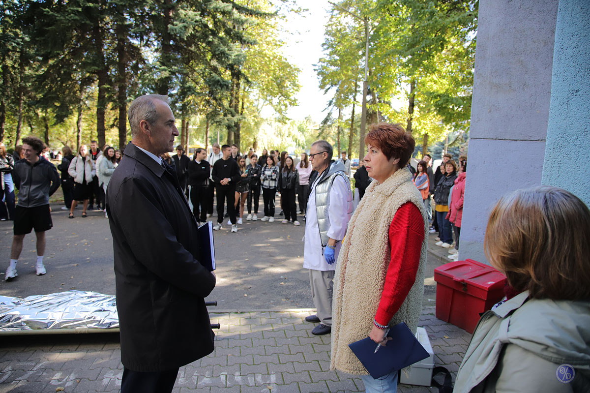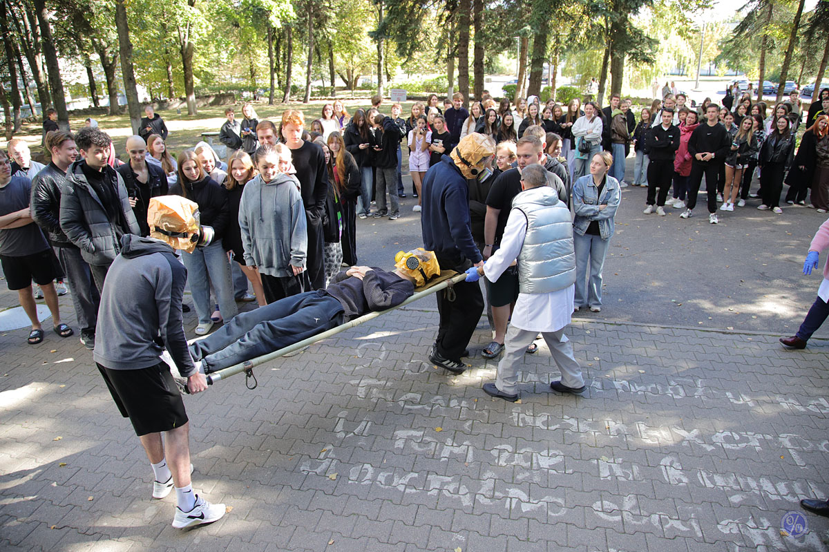On September 25, Belarus celebrated Unified Safety Day. As part of this event, BSEU practiced its evacuation plan for staff and students: following an alarm, staff and students in Dormitory No. 7 evacuated the building in an organized manner. A demonstration of a human evacuation and a firefighting demonstration were held in the adjacent area.