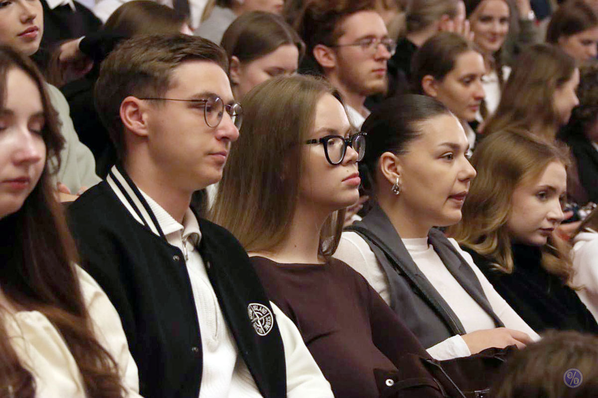 Before the performance, Vice-Rector for Ideological and Educational Work Sergei Ivanovich Skriba addressed the audience with a welcoming speech, emphasizing that even during the harsh years of war, our people found the strength for love, friendship, and creativity.
