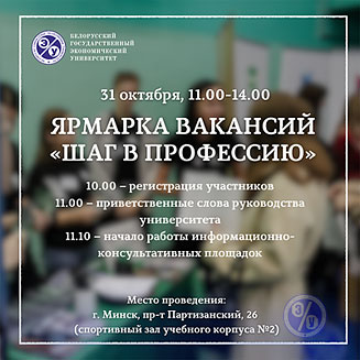 31 октября с 11:00 до 14:00 в БГЭУ пройдет ярмарка вакансий «Шаг в профессию».