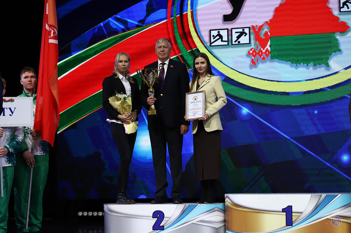 У рамках мерапрыемства адбылася цырымонія ўзнагароджання найлепшых ВНУ краіны па выніках Рэспубліканскай універсіяды 2024-2025 гг.