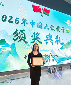 Anastasia Alayeva, a fourth-year student in the Faculty of International Business Communications at BSEU, has won the Chinese Ambassador's Award.