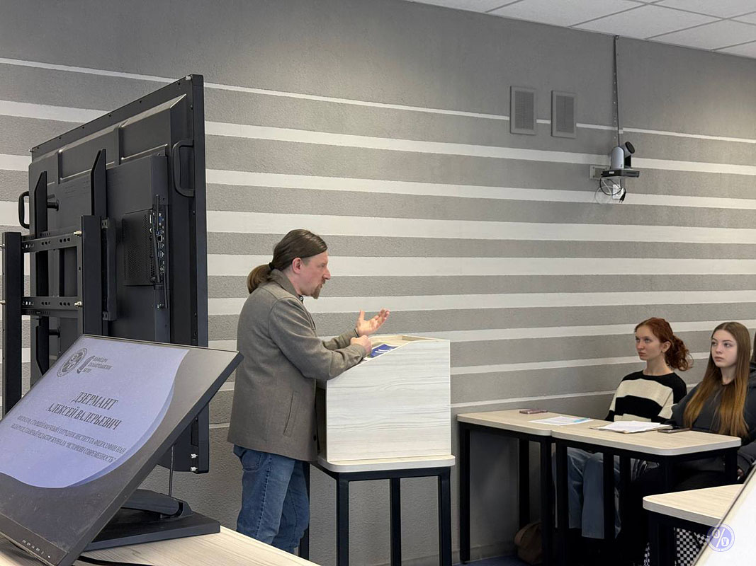 The roundtable was attended by first- to fourth-year students from the Faculty of Social Sciences and Economics, the Faculty of Economics and Management, and the Faculty of Philosophy and Mass Communication, as well as master's students. Invited guests also gave presentations: Aleksey Valerievich Dzermant, a philosopher, senior researcher at the Institute of Philosophy of the National Academy of Sciences of Belarus, and editor-in-chief of the journal "History and Modernity," and Renat Boltunov, a student at BSU.