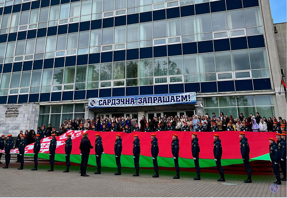 10 мая у главного корпуса БГЭУ прошел флешмоб «Споём гимн вместе». Это мероприятие стало частью патриотической акции, приуроченной ко Дню Государственного флага, Государственного герба и Государственного гимна Республики Беларусь.