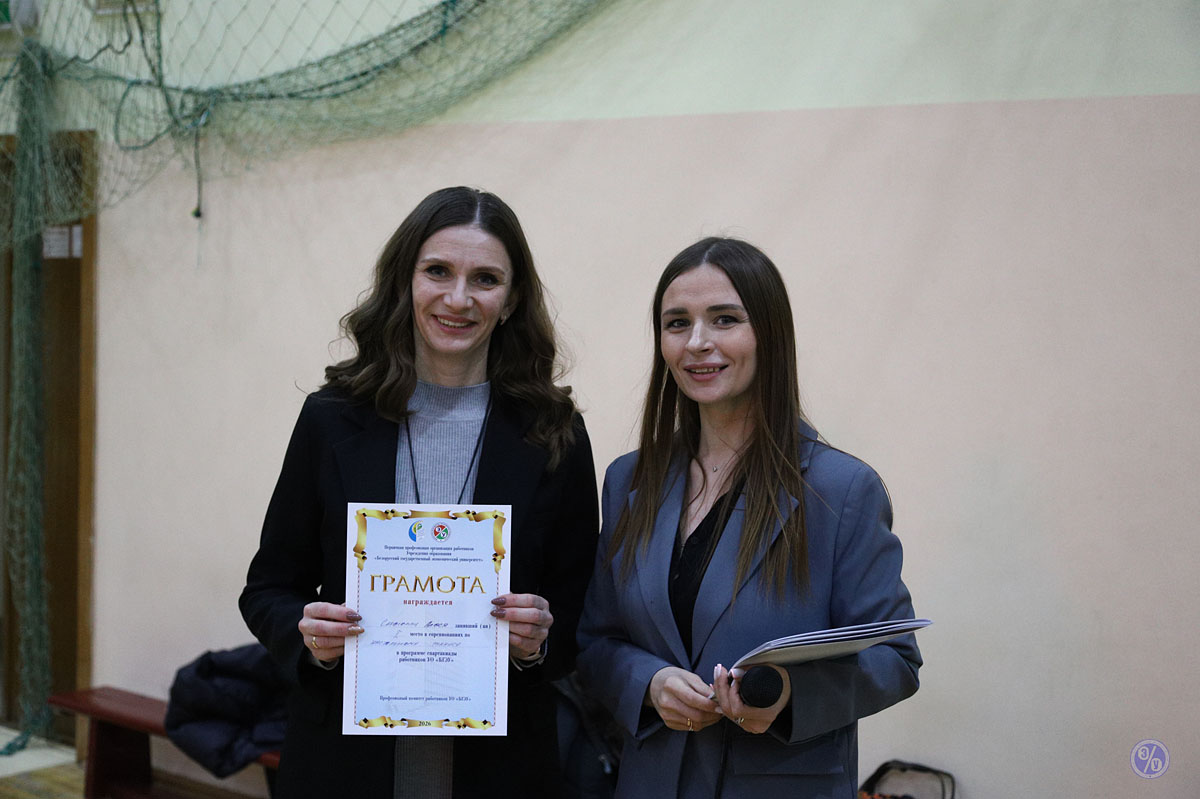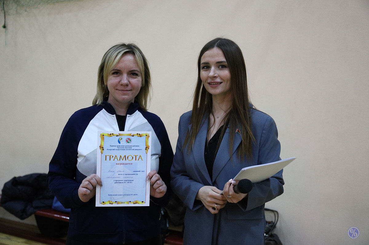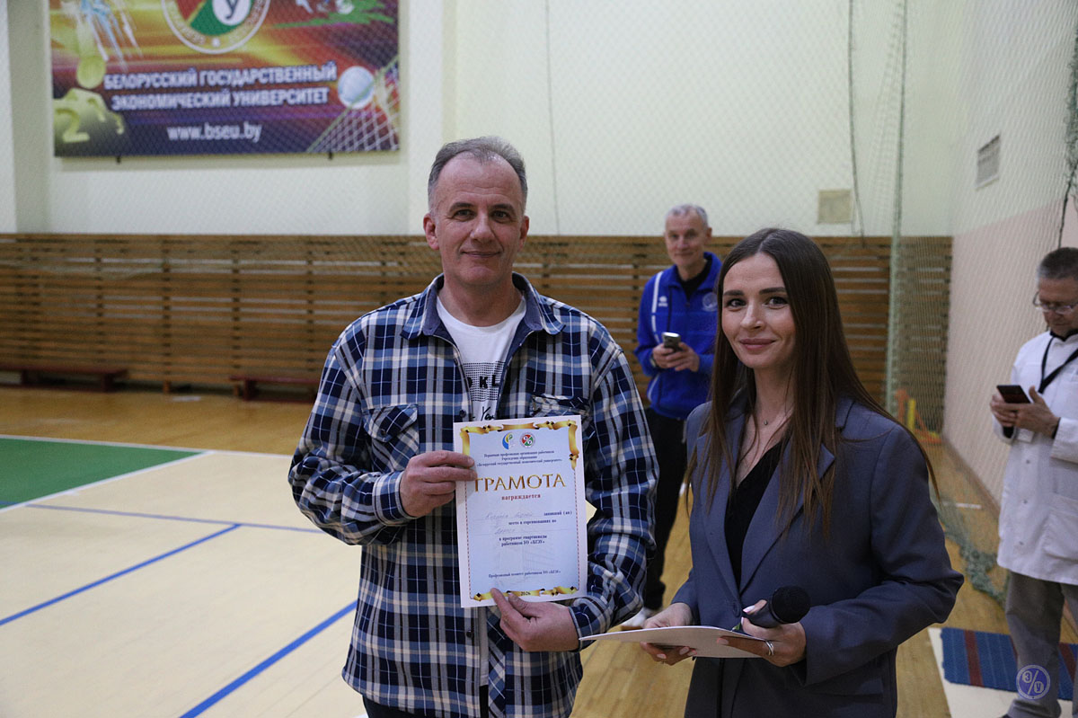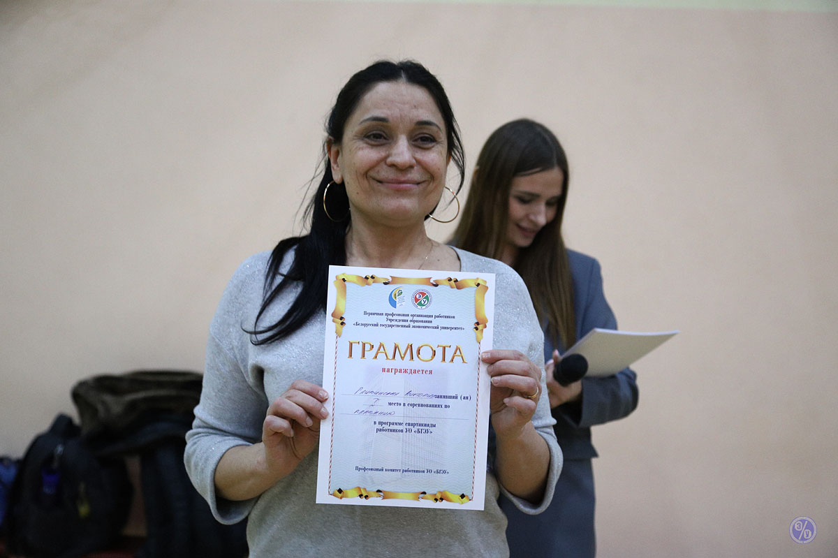 В БГЭУ завершилась традиционная спартакиада работников, которая проходила на протяжении двух недель и объединила представителей 13 структурных подразделений и факультетов. Участники соревновались в девяти видах спорта: волейбол, бадминтон, плавание, шахматы, бильярд, дартс, настольный теннис, домино и стрельба.
